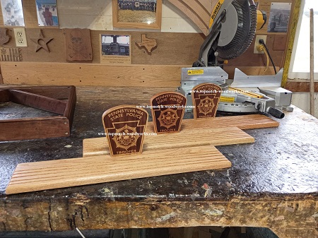 The Pennsylvania State Police Challenge Coin Rack from Topnotch Woodworks is the perfect rack to display all your favorite coins!